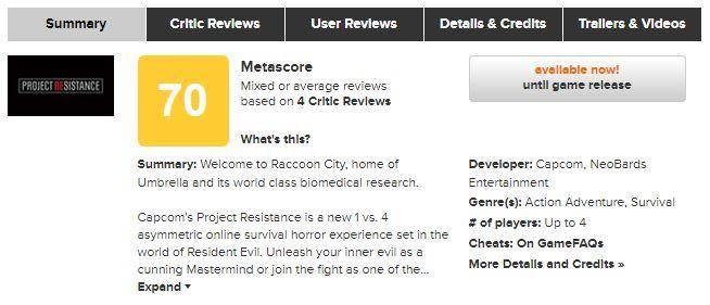 IGN 总评:《生化危机:抵抗计划》的4v1多人模式有它的闪光点,但是如果它能够在角色平衡、战斗反馈上做得更好的话,说不定就能和单人模式相媲美了(指《生化危机3:重制版》)。扮演邪恶的操纵者,较之于扮演不平衡的幸存者,游戏体验要好得多。一方面你能够饰演系列游戏中的标志性恶人,另一方面和幸存者斗智斗勇的过程很有趣。