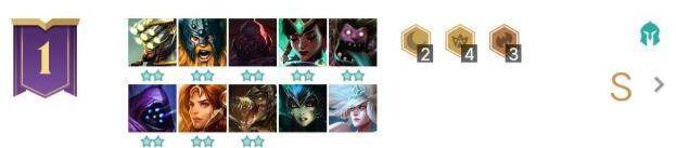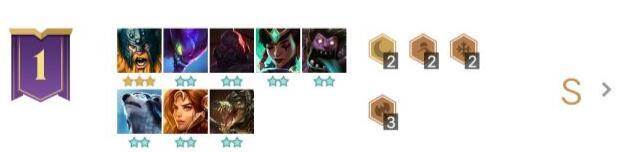 这个版本一直在玩剧毒六狂战吃烂分,基本都能有两星奥拉夫,烂分基本稳吃,吃鸡看运气,有时候炼金和拉夫装备胡就能打赢光。能不能吃鸡的主要缘故得看隔壁哥们的光厉不厉害,能不能把别人都干趴下。