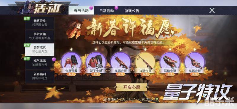 瑞雪节活动开启,《量子特攻》春节活动也进入收官阶段。直到2月16日为止,“美梦成真”活动都将持续进行,漫游者们可以放下心愿,获取永久新春系列时装、武器涂装等独特外观,均有机会获取!红金为主的配色,喜庆、富贵,让你新的一年里赛出全新风格,打出更好成绩!