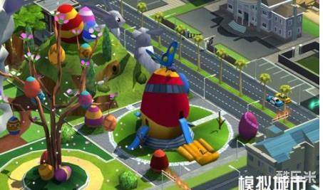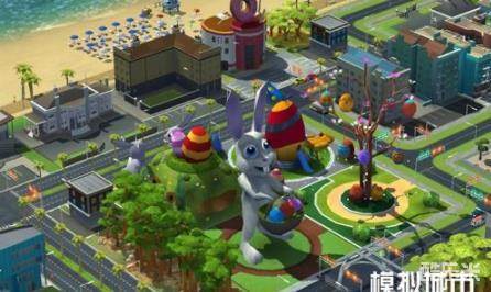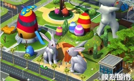 《模拟城市:我是市长》的卡通乐园建筑多以小兔和彩蛋为主要元素,而名为篮子小兔的公园便以巨型的兔子雕像为主体。值得的一提的是,小兔的手里还提了盛满彩蛋的竹篮,仿佛要将美好的春天作为礼物送给大家。