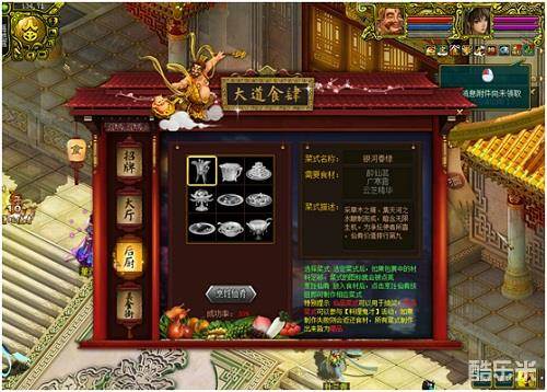 值得注意的是,制作出仙品菜式可以用于大厅内的抽奖,异品菜式可以参与“料理鬼才”活动,如果制作失败则会返还食材,所有的菜式制作出来皆为赠品。说到“料理鬼才”活动,就不的说一下“大道食肆”的美食街界面了。