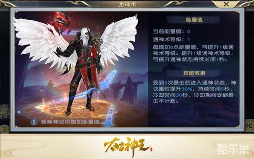 《太古神王》手游的神诀技能只有在通神状态下才有可能触发,而想要进入通神状态则需要满足两个条件。首先玩家佩戴的神诀能量总和要在8点以上,满足条件后角色进入战斗受到3次暴击就会触发通神状态。