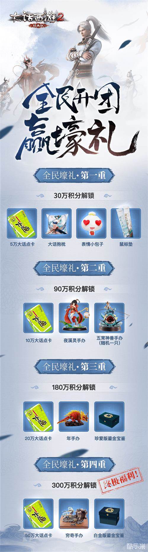 【全民PK团】将于4月10日正式开启,加入团队即可累计个人PK季积分,当所有团员总积分达到一定梯度之后还能解锁超级大奖福利!奖励共有四个梯度,珍稀手办、白金版2019鎏金宝鉴、海量点卡通通都有。