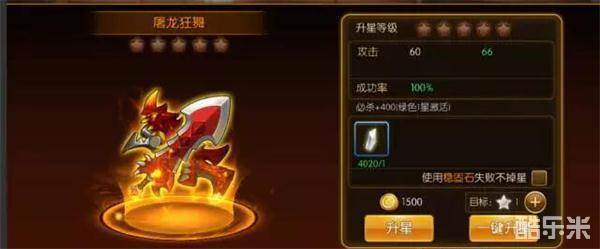 装备升星时有一定概率升星失败,还有可能使星级不升反降。玩家可以使用稳固石来保护装备,使升星失败时星级不会损失。