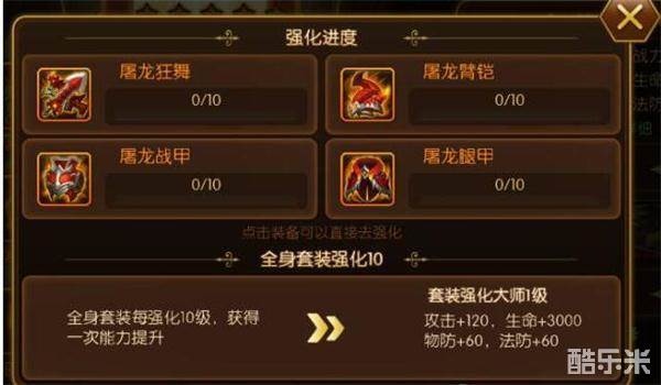 玩家可以消耗金币来强化装备,装备强化后可以获得属性上的提升,也会使装备的其他养成点能开放到更高的级别。