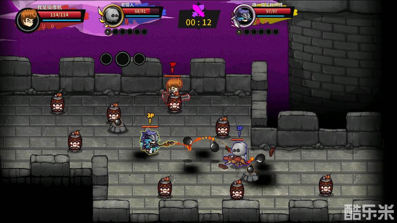 玩家们可以在这个玩法中捡起各种不同的主动道具,其中包含炸弹,飞刀,回力标,只要你活到最后就能取得胜利哦,另外如果对局时间超过了120秒场景中就会不停的出现落雷或是落石,为的是加快游戏的节奏,玩家们需要注意躲避哦。