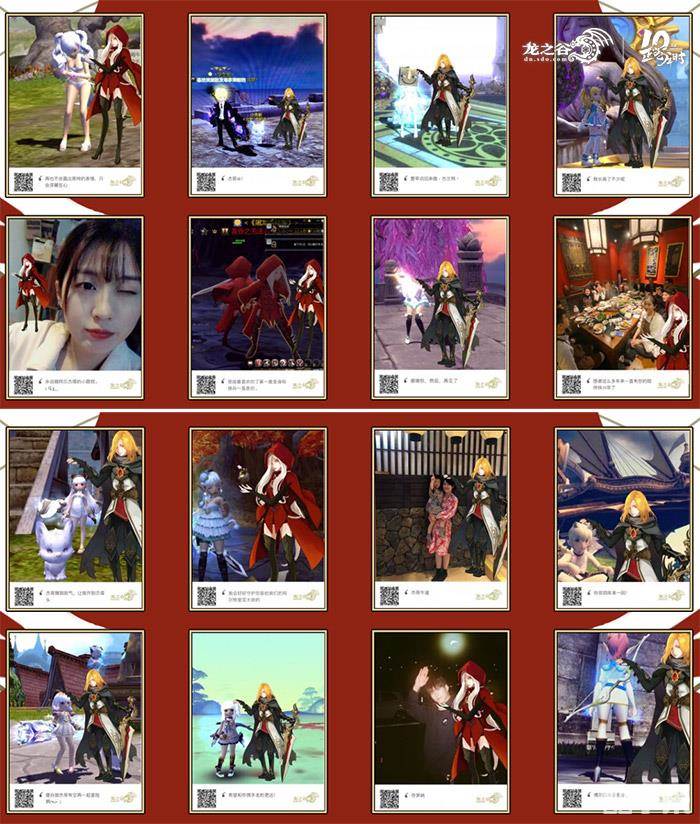 “永恒的追忆”活动一上线,众多谷迷就纷纷热情参与。无论是与杰兰特称兄道弟般的轻轻搭着肩膀,还是小鸟依人似的让杰哥来一次摸头杀,或者是让塔姐亲昵的摸着自己的脸颊……深情款款的动作和谷迷们温情的寄语,让人不禁动容。而在不少分享的作品中,也有一些特别的作品,让人莞尔。华南电信一区的谷迷“失去了梦想的咸鱼”与杰兰特合影,寄语:“兄弟,加油”。来自全国网通大区的谷迷“月上天蓝”与塔姐合影,说:“给你晒晒我们这幸福快乐的一家”。《龙之谷》在今年7月22日将迎来自己的十周岁生日,或许“龙之谷”这三个字,对很多谷迷来说,不仅仅只是一款游戏,这三个字还代表了“成长”与“陪伴”,有着无可替代的意义。