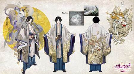 由于白泽被描述为具有山羊的角,所以适当添加了山羊的元素给他。而设定中白泽喜欢烹饪自然也喜欢喝酒,加之其玩世不恭的天性,所以手中常持有一个葫芦,能够提供源源不断的仙酒。