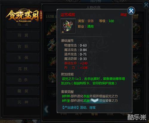 诅咒之力:增加击杀爆率20,削弱官印和黄金卡效果,诅咒等级越高,效果越好,诅咒部件增加,效果叠加