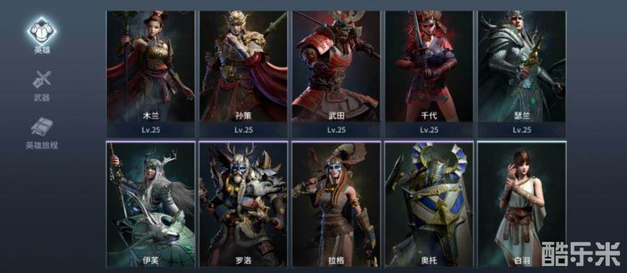 当然武器想要发挥出应有的威力,与英雄的选择也有着很大关系。《猎手之王》中出现的英雄均为中外知名人物,如三国时期的吴国霸主孙策、抗击柔然的木兰,以及日本一流傀儡师千代等。每位英雄拥有各自独特的被动技能,并采用双武器设定,在战场中每位英雄可搭配两种武器,在对敌较量时根据战场环境不同可以秒速切换武器。