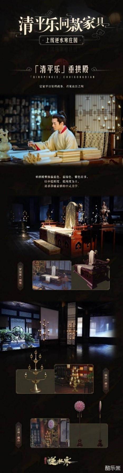 作为《清平乐》深度联动合作伙伴,《逆水寒》除了在衣服上下功夫之外,还在庄园系统里复刻了大量《清平乐》皇宫同款家具物料。