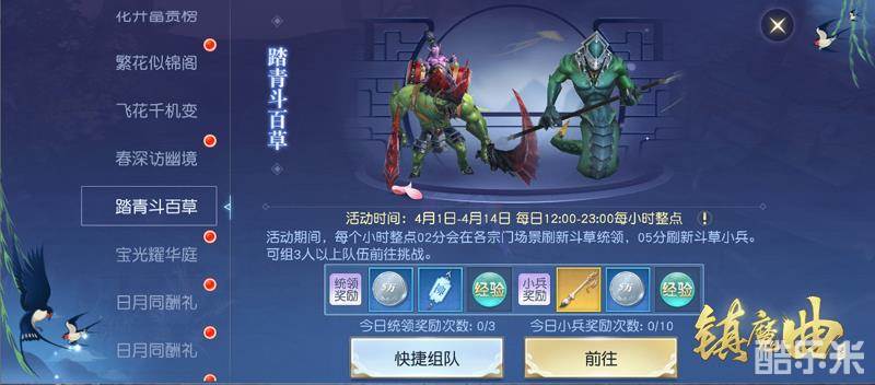 中州焕新第二期即将结束,《镇魔曲》“踏青寻春”大型庆典也临近尾声。特权减负、抽奖好礼多,“大乐透”赢取海量绑定元宝,赶跑斗草统领、小兵收获丰厚奖励,还能利用“灵曜结”“金玉结”抽取珍稀道具!同时,天命者们亦可按需购买超值宝箱,把全新时装、翅膀等好礼带回家,还能收获“财神值”参与全服比拼,领取免费宝箱、特殊称谓等独特奖励!