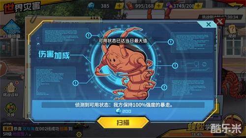 收益基本取决于玩家所造成的伤害值,所以提高伤害是关键所在。除了阵容搭配,世界灾害中还有一个扫描侦查机制。玩家可通过扫描BOSS以侦测可用状态,来获取伤害加成。每个角色每天有3次免费扫描机会,此后可消耗钻石来进行扫描。每次成功侦测可获得20%强度的暴走加成,当天最高加成为100%。