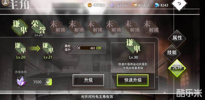 首先八荣八耻。主角的光环看似普通,其实非常给力,光环的效果能够影响所有的主角,效果非常的强力,而且不需要什么潜质的条件,无论在前中后期,你高等级的光环都能提供大量的帮助和提升,怎么说呢,升级光环绝对不亏。