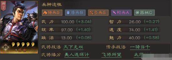 首先三势阵只加强主将的自带的那一个战法而且只能是主动或者突击战法,因为的确有人问过我,我三势吕布为什么突击战法发动几率没提高啊!如果二三突击战法也提高的花,那三势吕布绝对直飞T0了!