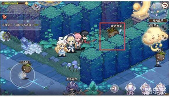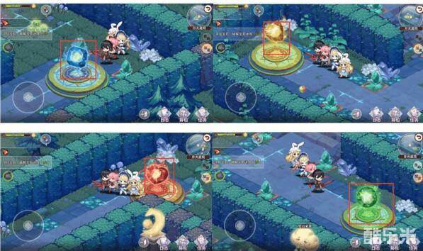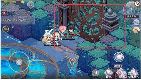 (1)【击败未知来者】重复任务,毕竟是探索主线的boss嘛,当然得天天揍啊。队长大人需要先在月光庭院中收集到以下四个宝石,位置如下图。收集完宝石后移到到下面位置,对四个宝石柱依次镶嵌宝石,探索主线boss就出来了,打败它就可以赢得探索胜利并完成探索任务!