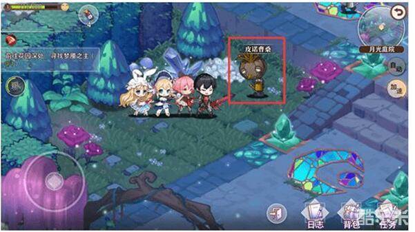给予道具后,【皮诺曹桑】就会原地爆炸,呸,原地消失,然后出现在下图位置。依次选择对话【询问】、【秘密花园】和【怎么进去?】后,会获得探索任务【进入红心王后的秘密花园】的线索,让你去找【魔镜】。(多此一举,找安徒生不就得了,嗯哼)至此,探索任务【帮助匹诺曹桑】就完成了。