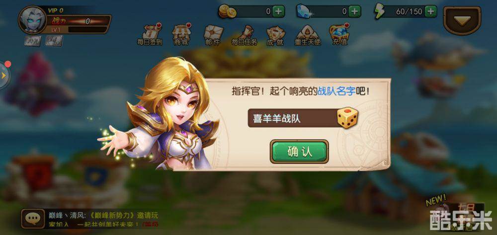 1.首先我们进入游戏第一件事 就是先组建一个战队,为我们的战队取一个个威武霸气的名字!让敌人看到你的名字就吓得屁滚尿流就是你的目的!