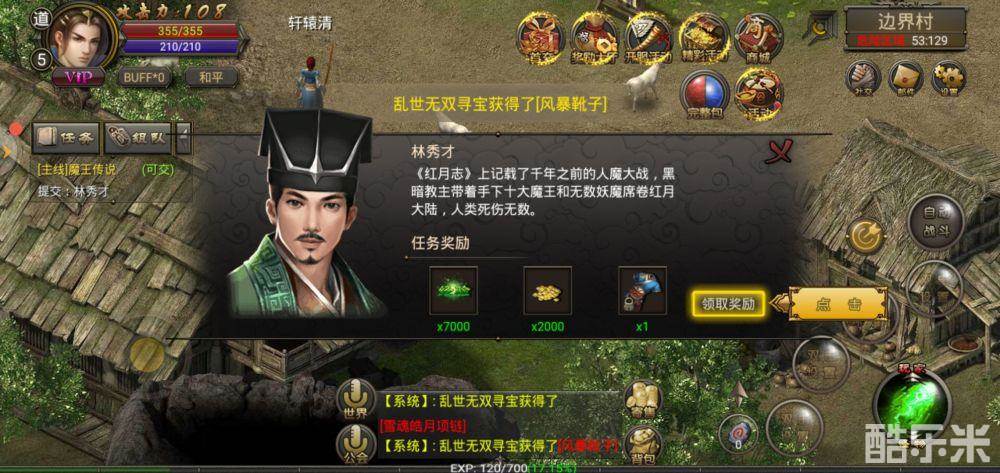 4.除魔任务 :除魔任务有等级之分,一般等级越高奖励也就越丰厚,如果没有想要的等级大家可以花费一些金币来刷新任务,只需要消灭掉一定数量的怪物就可以获得奖励以及功勋,不仅能够快速升级还能够增加属性,一定要做除魔任务哦!