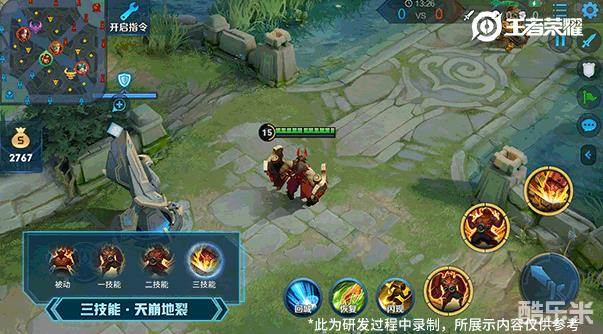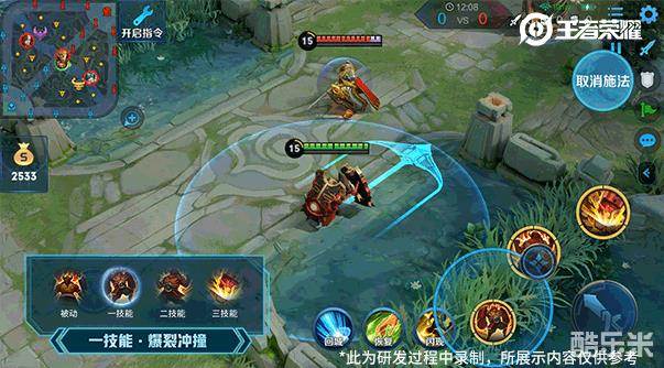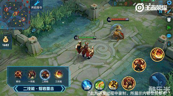 将一技能作为媒介,提升二、三技能的可玩性:在大招的释放期间,玩家可以通过释放1技能进行中断,冲刺结束后廉颇会继续释放未完成的大招。