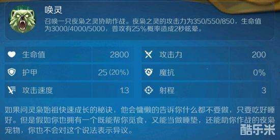 首先这个棋子只需要两费就能入手,种族为野兽职业为德鲁伊,唤灵这个技能可以召唤一只夜枭之灵帮助玩家们作战,夜枭之灵的攻击力为350、550、850,随着棋子等级的提升伤害也会变高哦。