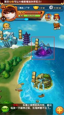 4.在主界面地图上还有每天会出现两次的东海异兽,玩家可以通过合力击杀它获得大量的金钱与仙誉,还有黄飞虎碎片会作为奖励发放给玩家。