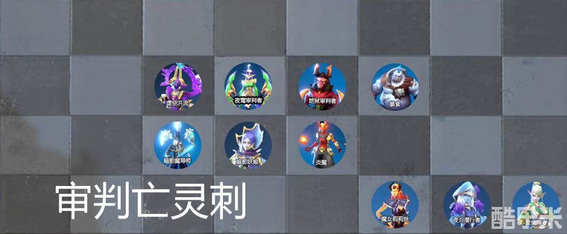 首先在前期我们需要拿到夜莺审判、地狱审判和三刺客进行过渡,前期如果能拿到四个审判你会获得非常大的优势,中期我们再拿下四个亡灵基本上阵容就成型了,当然你也可以补一个控制角色到队伍中,配合审判和恶魔棋子可以打出很高的爆发伤害,等到了后期炎魔、地狱审判和灵剑舞者都是可以升级到三星的。现在来看看装备应该怎么分。