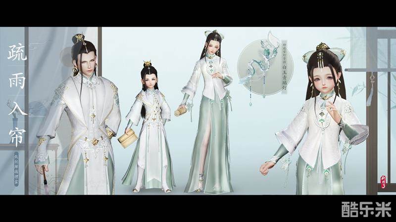 本次上架的故剑归园礼盒“疏雨入帘”青素淡雅又不失韵味,白色与湖绿色搭配宛如闲云倒映碧波之上,幽然宁静。衣着款式得体舒适,整体典雅大气,透露着居家生活自在惬意又不失端庄沉稳的气度。尤其作为本次外观的一大亮点,礼盒外装更是附带惊喜沐浴特效!开启特效后侠士可随时随地摆出浴盆,换上舒适浴袍安然沐浴一洗疲乏,更有可爱小黄鸭为沐浴休憩增添一番趣味。