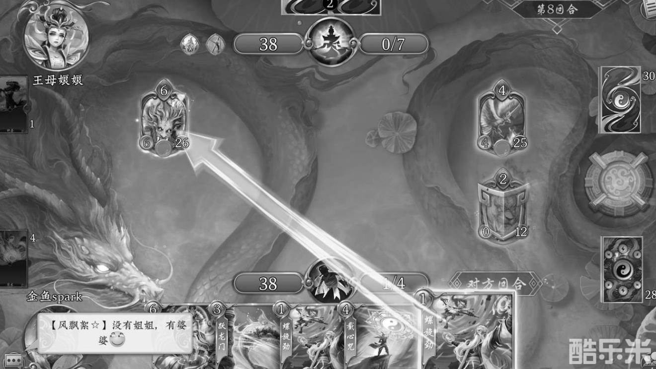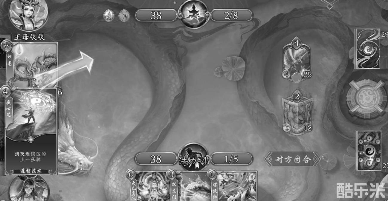 后面回合,己方场面有优势,选择留一个截心的费用,对面下什么牌都能截掉,继续扩大优势;