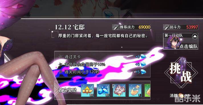 如果没有这几个角色的话可以尝试把琪琪刷80,夏目刷80,苏我或者凤凰保证能起手清开场,然后上琪琪突脸晕住,接着上夏目开斩,如果没死最后上个整列或者AOE补刀,站位都堆中路保证队长血量。如果没弄死就把装备再堆一下,中门对狙伤害得莽出来。