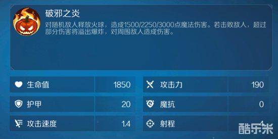 棋子技能破邪之炎:对随机敌人释放火球,造成1500/2250/3000点魔法伤害。若击败敌人,超过部分伤害将溢出爆炸,对周围敌人造成伤害。