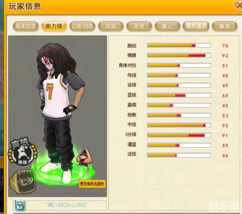 (SF天生能力值各项均衡,没有很突出,所以主堆一个能力必定舍弃其他,个人感觉主堆1个能力不实用,因为像弹跳三分这些能力,达到一定数值,再往上就不是特别明显了)