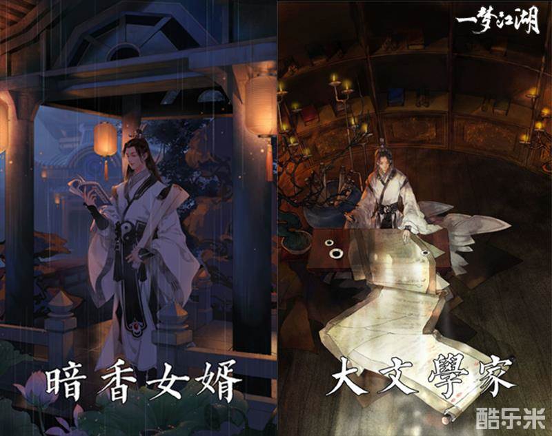 体验过萧居棠的不同剧情后,玩家将获得代表他不同命运的身份卡牌:“暗香女婿”卡牌中的小棠站在暗香门派灯下,伴雨阅卷;“大文学家”卡牌中,他在桌前执笔写满长长卷轴。