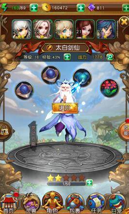 2. 伙伴装备所有当前修真境界所需要的丹药后,即可点击“进阶”按钮进行提升;