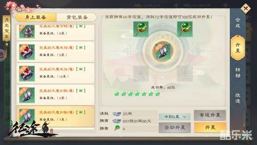 通过以上玩法,在没有节日活动时,每周至少能得到100个升级宝石。但在装备升星中,只有足够高的成功率才能让宝石发挥作用。接下来就来讲些升星技巧。