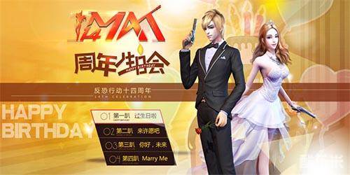 此次14周年庆活动主要分为四趴:“过生日啦”、“来许愿吧”、“你好,未来”、“Marry me”。每一趴活动都是福利满满,多项幸运活动期待你们的参与!