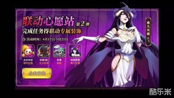 4月17日-5月21日,开启联动心愿站第二弹奖励更新,全新联动专属饰品、击杀特效等好礼等你来拿。在活动页面选择一个心仪的奖励后,可获得该奖励的免费使用权,若许愿进度达到满进度,则获得永久奖励。