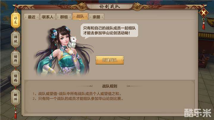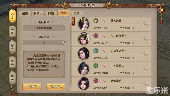 如果少侠们没有战队,可以临时快速组建战队或者加入已有战队(只要快速取个响亮的战队名就能迅速组成战队),战队威望值在5000以下的战队,可以随时退出并且随时加入别的战队。