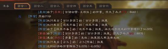 这样的兵书配法,可以最大化陈宫的伤害,第二第三战法也可以选择伤害类型为DOT的战法,我在朱儁篇说过,攻其不备的判定方式是动态判定,每次判定之前只要判定的敌军是血量最高的就会判定,所以攻其不备在一回合内可以多次触发,而多次判定的技能更容易在其中触发将威的效果,让他的期望值更高。