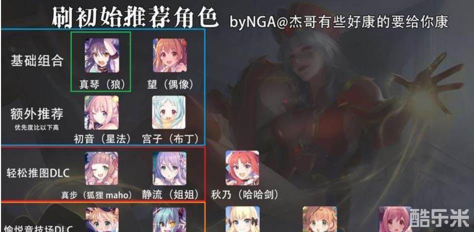 理论上较优开局是此图上数前两排蓝色框里的四个角色