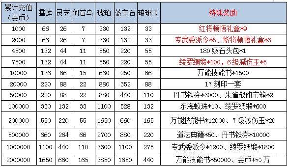 活动内容:活动期间,累计充值达到指定额度即可领取相应的充值豪华礼包奖励!