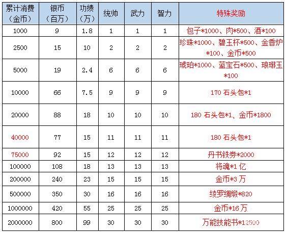 活动内容:活动期间,消耗一定的数量金币可以领取相应的礼包。