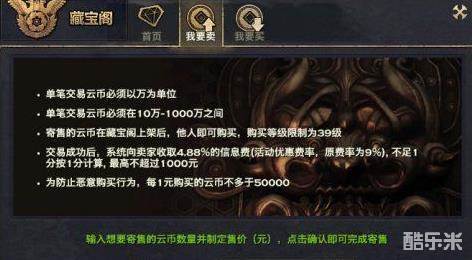 1、实际上,藏宝阁的交易主要是云币,且每一次出售的数量必须以W为单位,且上下限为10——1000W,玩家需要做好对应的准备和配置工作;