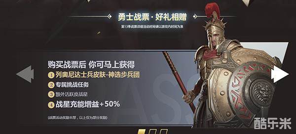 随着战票S13赛季的开启,《铁甲雄兵》战票新赛季军团外观奖励也随之揭晓。本赛季的军团外观花落人气武将列列奥尼达与黄月英。玩家如果购买第13赛战票后,那么就能直接解锁获得列奥尼达士兵皮肤“神裔步兵团”。