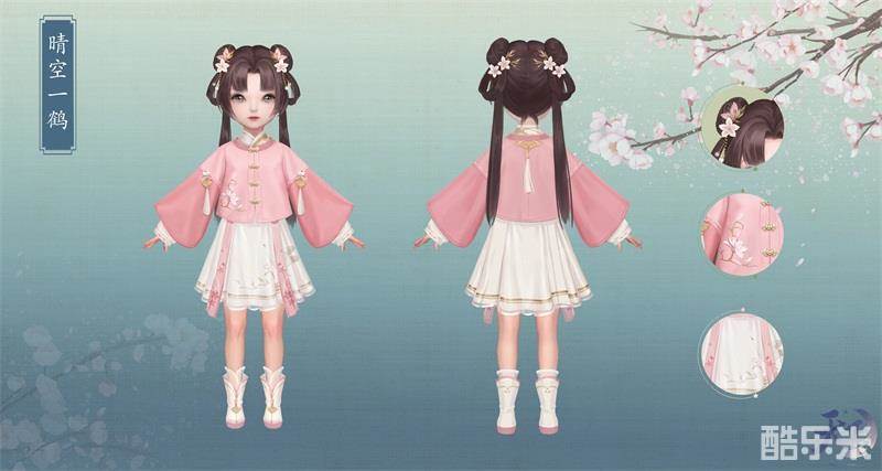 初春小清新从粉蓝糖果色开始!《天下3》觉醒体型全新春季时装“晴空一鹤”已于2月26日正式与大家见面。其中,萝莉体型的“晴空一鹤”时装,上身穿一件粉白色圆领通袖对襟短袄,如姣花照水,格外娴静温柔。衣襟上的纽扣则用金色珍珠镶嵌的小花精心制作而成,与中衣领口及袖口的金色花纹分外相宜。袖中位置还分别缀着两枚金色银杏叶形的白穗流苏,正与背后的金坠流苏相呼应,精致程度可以打满分!下身则穿一条奶油白色的改良款金边马面短裙,可爱之余又与脚上的粉底小短靴搭配出纯真十足的活泼感。发型上,更是没有比攒着桃花的双马尾环髻更惹人怜爱的设计啦!