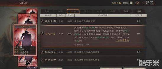 由于吕玲绮速度慢、对主动战法释放频率需求高,不推荐其使用高伤准备战法,而且相比“所向披靡”“万箭齐发”之流也有更有力的竞争者。“左右开弓”作为弓兵专属主动战法,提供高额暴击以及附加对骑兵的额外伤害能力,过去由于其较低的技能发动概率难堪输出大任,这点正好可以和吕玲绮互补。“轻勇飞燕”不用多说S1过来的玩家都明白,上限较高的伪“S”级输出战法,同时在魏法盾面世后骑虎盾每况日下,“轻勇飞燕”自然剩余下来。