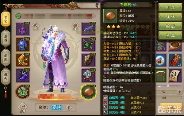 暗器玩法是目前天龙八部手游中,开启等级最高的玩法,需要角色等级达到64级。暗器可以增加角色大量的属性和战斗力,并且可以和其他装备位一样,可以强化,可以镶嵌宝石。光是这两样就可以提升很高的战力了。