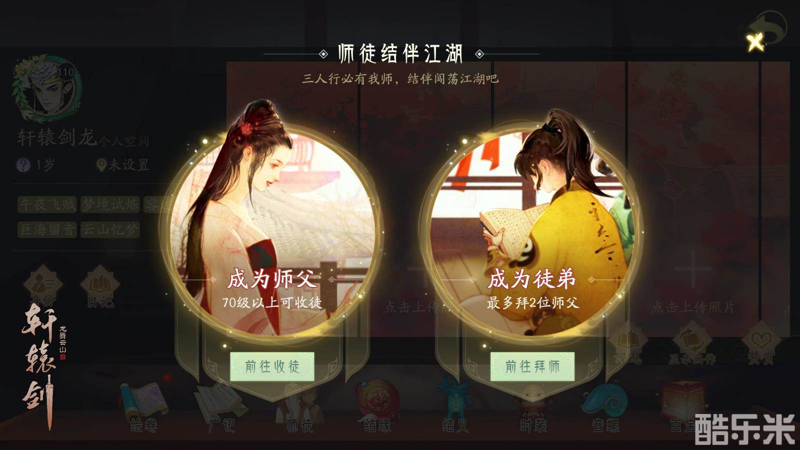 行走于这片诗意江湖里,当面对难题却无法解决时,少侠是否想找个师父为你指点迷津?当积累了宝贵的经验技巧时,少侠是否也想寻个徒弟传道受业?近日《轩辕剑龙舞云山》师徒系统已惊喜上线,帮助侠士们追随名师,开启寻师问道之旅;或另立师门招募贤徒,师徒一心,携手同行。