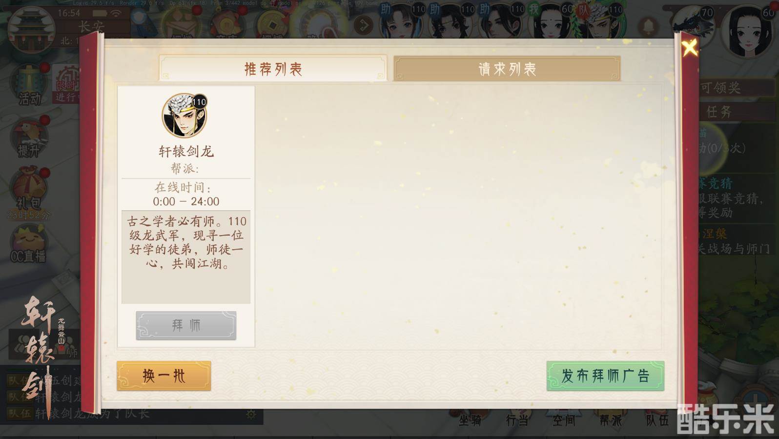 少侠可以进入师徒界面,通过发布拜师广告前往拜师,也可以在招募系统挑选自己的心仪弟子。另外,等级超过70级的侠士依然可以选择拜师深造,虚心修行。除了师徒招募平台,少侠也可以通过点击其他少侠的头像来选择直接拜师或收徒,缔结师缘。