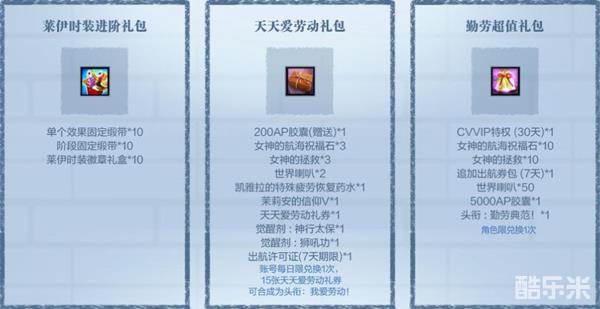 4月21日维护后至5月19日维护前,三款实用礼包上架商城!